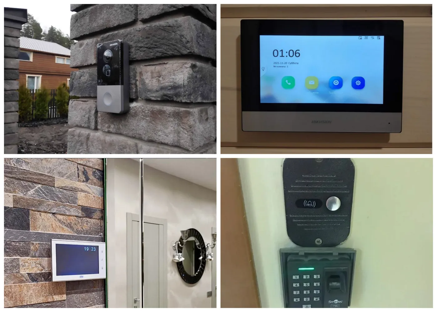 Мы работаем с оборудованием разных производителей и типов. В практике встречаются как простые аналоговые аудиодомофоны, так и современные IP-видеодомофоны, Wi-Fi-мониторы, вызывные панели, контроллеры доступа и комплексные системы СКУД.
